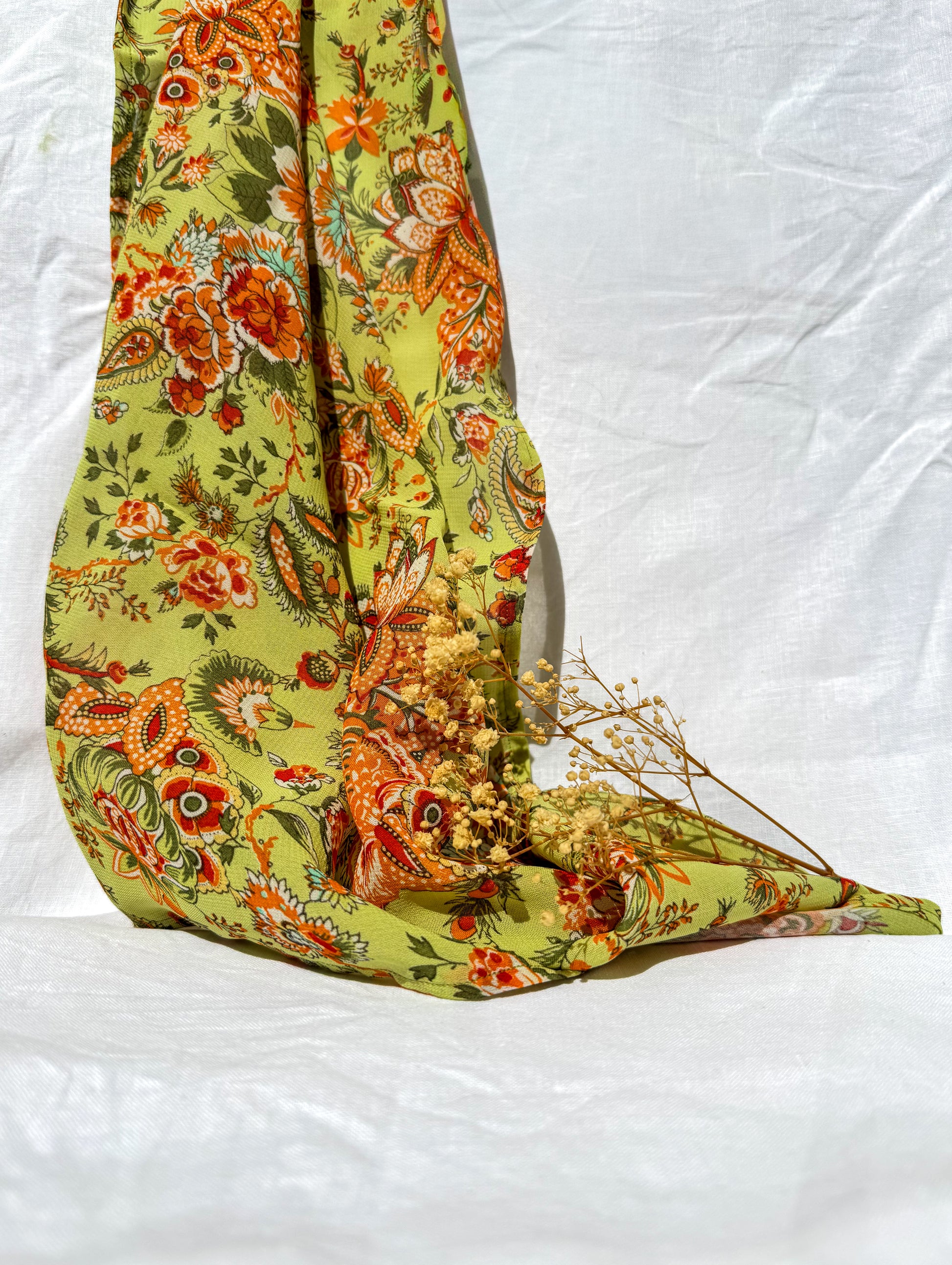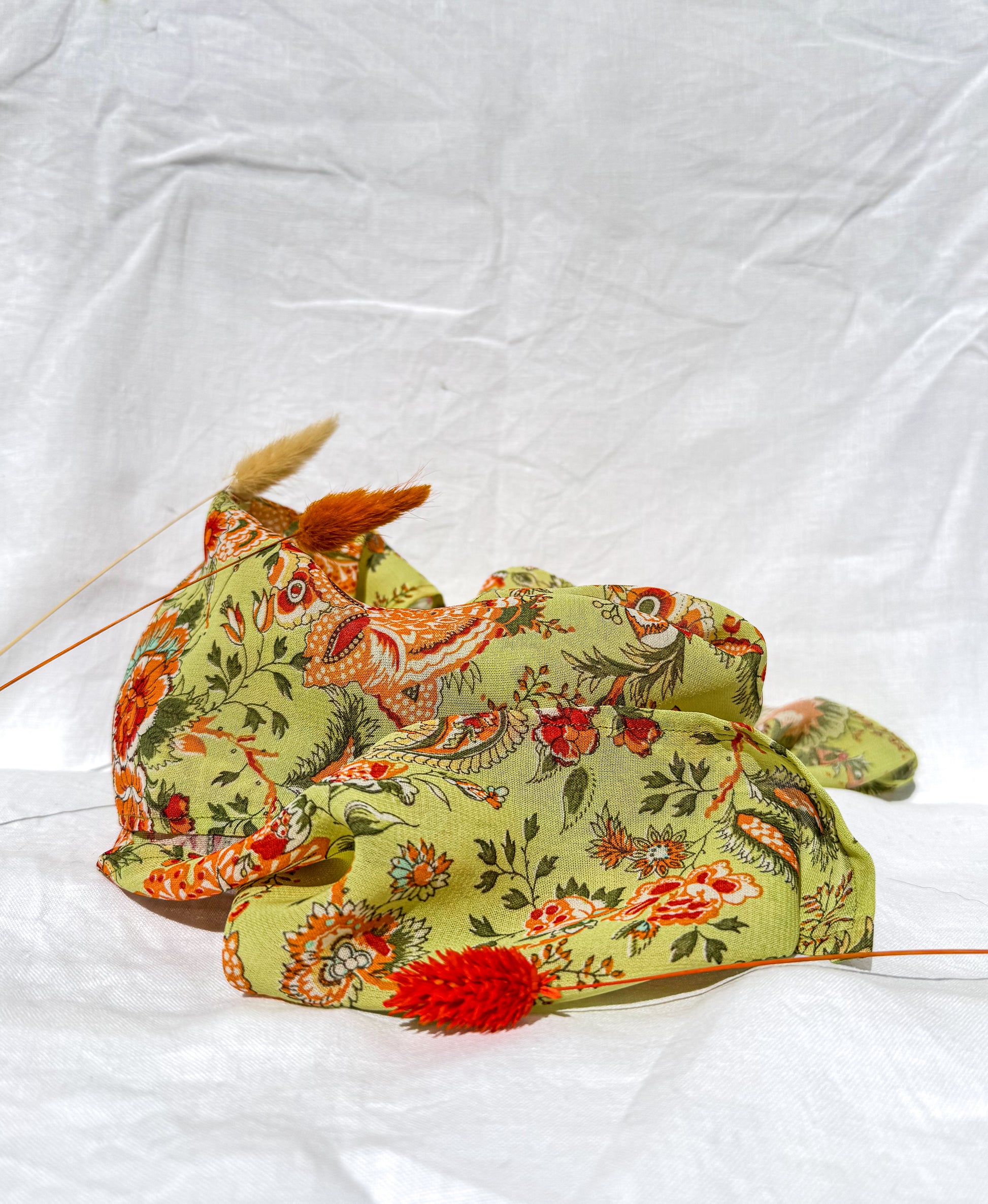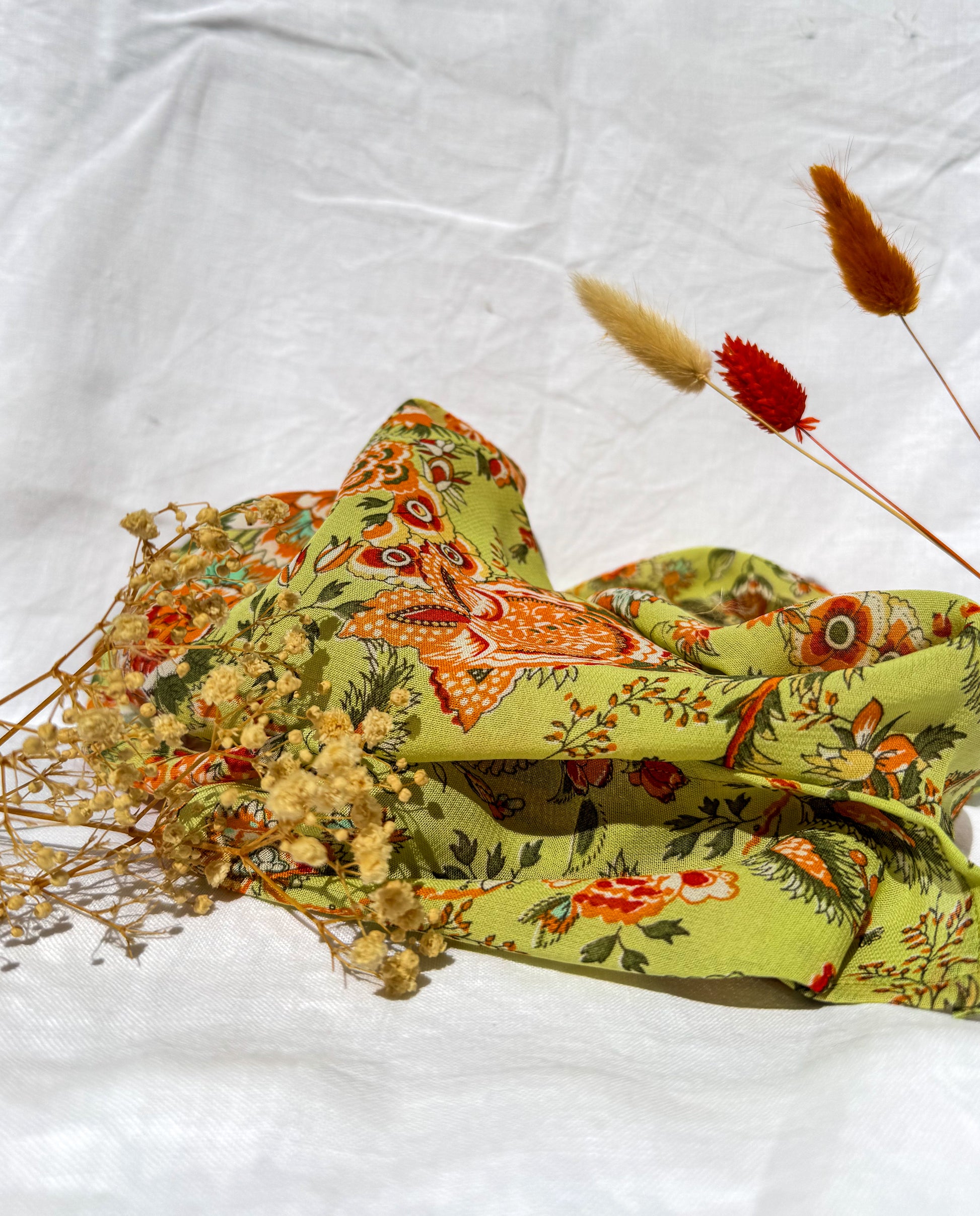Apportez une touche de fraîcheur à vos tenues avec ce foulard fleuri 60x60 cm, cousu main avec soin. Ses motifs inspirés d’un jardin ensoleillé évoquent douceur et légèreté, idéal pour illuminer vos journées. Léger et élégant, il peut se porter de multiples façons pour sublimer votre style avec délicatesse.